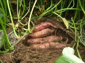 二、裂缝追肥法:红薯膨大地面出现裂缝时,每亩用500克磷酸二氢钾,加水400千克,或尿素2.5千克和过磷酸钙10千克,加水500千克,配成肥液灌裂缝,每株0.7-1千克。半月后,每亩再用草灰100千克加水500千克水(浸泡4小时),将滤出清液灌缝,并将其封严,此法亩增产300千克以上。